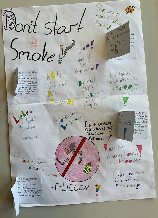 Die Klasse 7d der Erzbischöflichen Sankt Josef Gesamtschule in Bad Honnef hat Broschüren und Plakate zum Thema Gefahren des Rauchens erstellt.